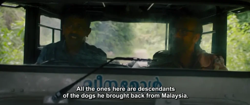 Why he is there: He comes to Kaattukunnu seeking revenge and also searching for a rare dog breed. He brings a female dog in heat, hoping to lure Kuriachan’s male dogs and through them, find Kuriachan. Also, it confirms whether the dogs are still under the control of their master or not.