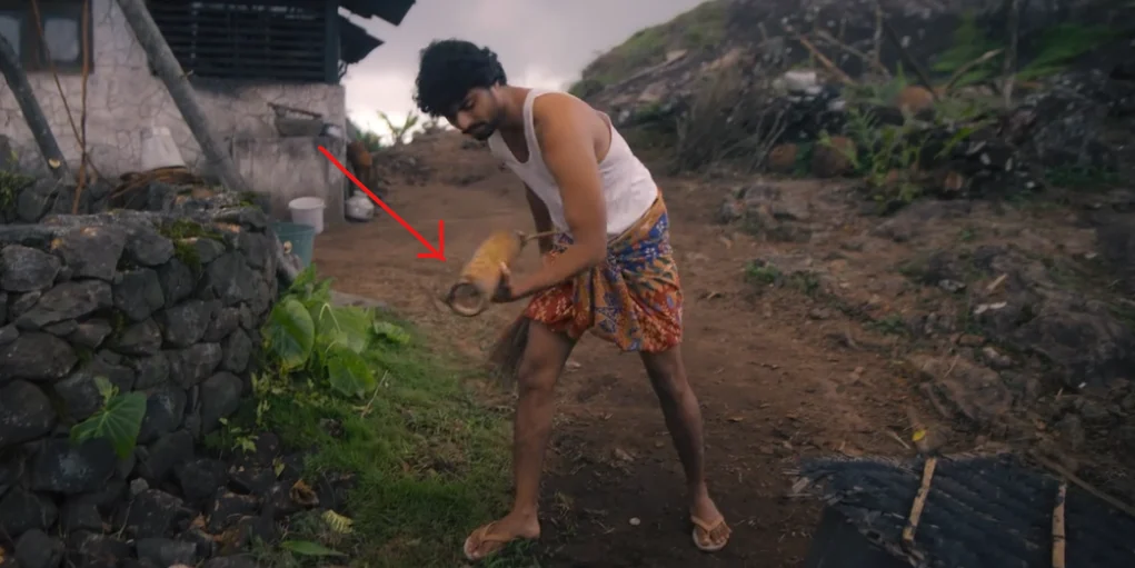 Manikandan discovers the bamboo container used to feed Kuriachan. He smells it, and the memory of the Malaysia flashback clicks into place.